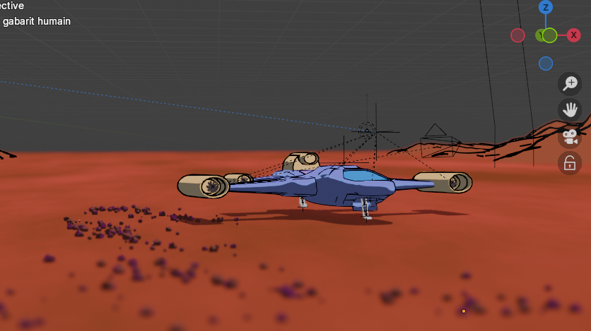Cette animation 3D a été réalisée dans le contexte du cours d’animation multimédia. J’ai voulu faire un effet visuel 2D dans Blender pour faire cette animation de vaisseau spatial. L’environnement autour est inspiré de la planète Mars.