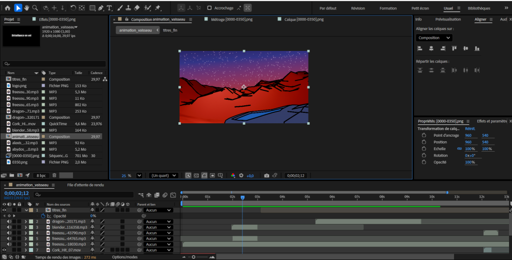 Lors de cette étape, j’ai rajouté des effets sonores qui permettent une meilleure compréhension de l’animation.